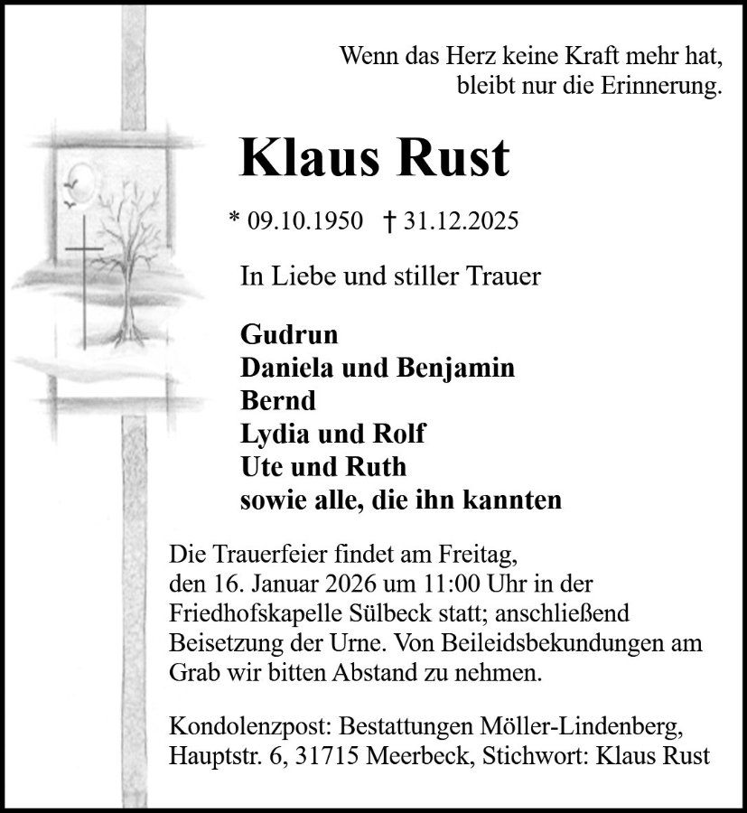 Klaus Rustgestorben am 31. Dezember 2025