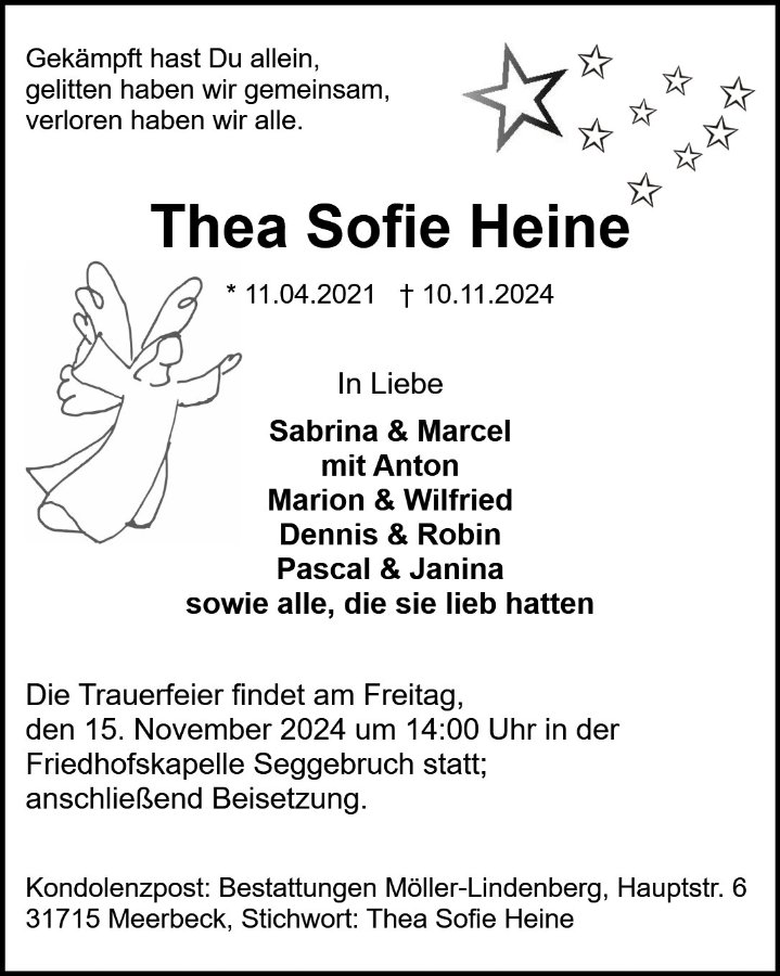 Liebe Sabrina, lieber Marcel, wir sind unendlich traurig, dass Thea von euch gehen musste und fühlen mit euch diesen unbeschreiblichen Schmerz.